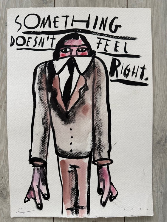 Eamonn O'Boyle, Something Doesn't Feel Right, Amsterdam 2024 - Firmato a mano. Opera di Eamonn O'Boyle, artista e illustratore irlandese residente ad Amsterdam. Laureato al National College of Art & Design Ireland (NCAD), ha esposto in Irlanda, Hong Kong, Giappone e Stati Uniti. Il suo primo libro per bambini, Some Nice People, ha collaborato con: Time Magazine, Nike, Ogilvy, Lane Crawford, Seibu, South China Morning Post, Espirit, Red Earth, Selfridges e Cartoon Network. Firmato dall'artista.
