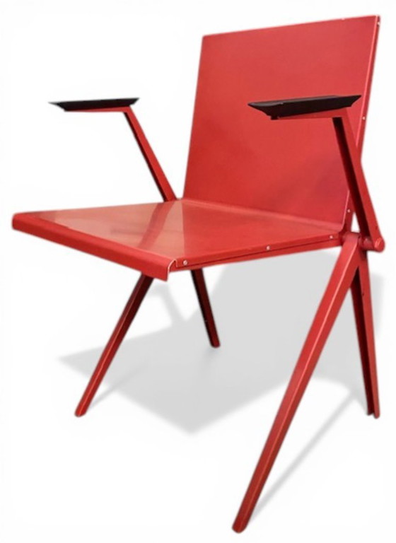 Questa sedia modello 217, nota anche come "Mondial", fu progettata da padre e figlio Gerrit e Wim Rietveld tra il 1956 e il 1957 e prodotta e venduta dall'azienda Gispen N.V.