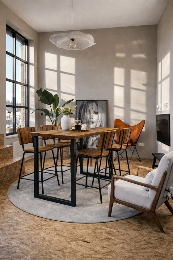Aggiungi un tocco di moderna eleganza alla tua sala da pranzo con questo splendido set da pranzo di Eijerkamp. Il set è composto da un tavolo dal design accattivante e quattro sedie abbinate, progettate per offrire stile e comfort. Il design elegante del tavolo è accentuato dalla robusta struttura in metallo e dal piano in teak di recupero, creando un look resistente e raffinato. Le sedie ergonomiche garantiscono un'esperienza culinaria confortevole, rendendo questo set perfetto sia per pasti informali che per occasioni formali. Arricchisci la tua casa con questo elegante set da pranzo e goditi la perfetta combinazione di funzionalità ed estetica.