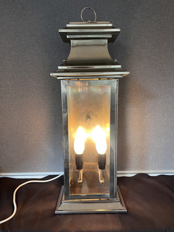 Questa elegante lanterna vintage da esterno degli anni '90 è una splendida aggiunta a qualsiasi spazio esterno. Realizzata in resistente nichel lucido e vetro, emana un fascino classico. Realizzata con dettagli raffinati e una splendida finitura, è progettata per essere montata a parete e fornisce un'illuminazione d'atmosfera per il vostro giardino o patio. Nonostante alcuni segni di usura, come piccoli graffi, rimane un pezzo funzionale e attraente per gli amanti del design vintage. In eccellenti condizioni vintage con prevedibili segni di usura.