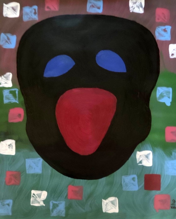 Entrate in un mondo di vibranti espressioni con questo affascinante dipinto astratto, "Elio-BJ". L'opera presenta un'audace forma nera con sorprendenti occhi blu e una vivace bocca rossa, su uno sfondo dinamico di quadrati verdi e multicolori. La composizione unica dell'opera invita gli spettatori a esplorarne la profondità e il significato, rendendola un perfetto spunto di conversazione per qualsiasi spazio.