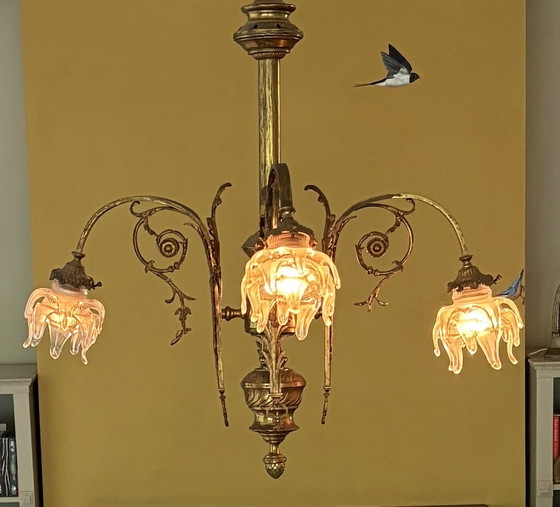 Fantastico, esagerato lampadario Art Déco. Questa lampada dà il meglio di sé su un soffitto alto. Un vero colpo d'occhio.