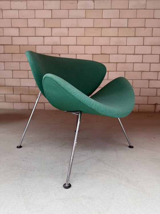 L'Orange Slice di Artifort è un vero e proprio classico del design. La sua forma, che ricorda la buccia di un'arancia, offre un comfort senza precedenti. Le sottili gambe ricurve sottolineano il suo carattere giocoso.