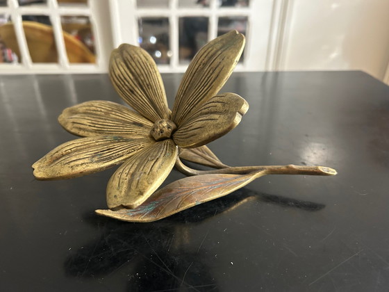 Fiore in ottone con petali rimovibili che funge da posacenere individuale, anni '70