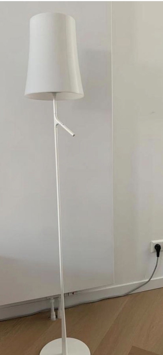 Lampada da terra Birdie originale Foscarini, colore bianco. Design italiano. Struttura in metallo con paralume in plastica. Scatola ancora sigillata.