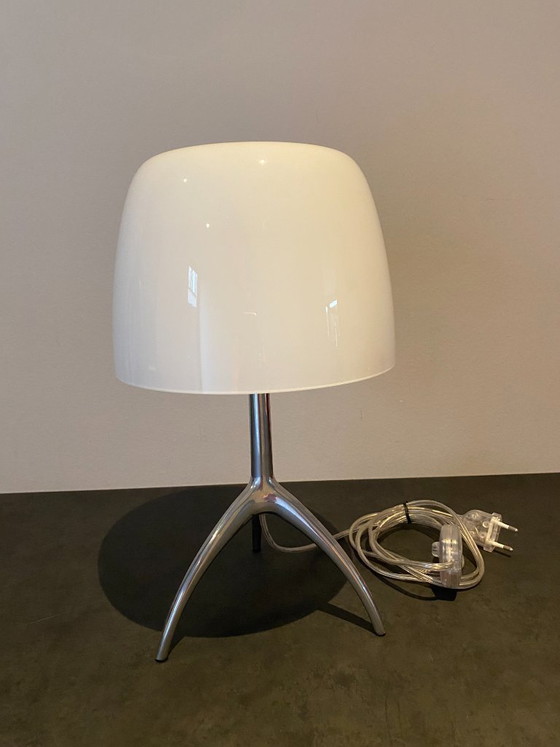 Questa lampada da tavolo originale Foscarini Lumiere Piccola è in ottime condizioni. Il paralume è in vetro bianco. La base è in alluminio, senza graffi. La lampada è dimmerabile!