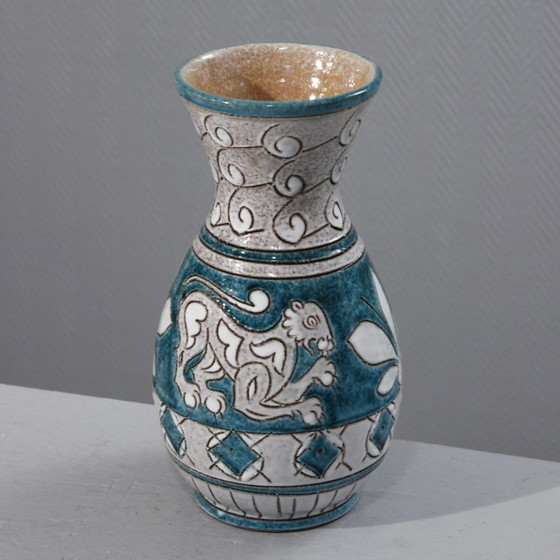 Vaso con fregio inciso di leoni, officine Fratelli Fanciullacci, Italia 1960 circa.