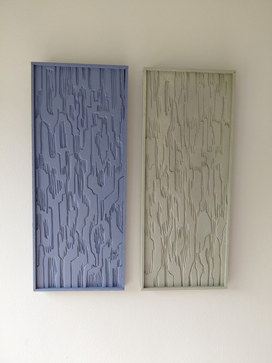 Questa opera d'arte moderna, chiamata "Forest & River", è composta da due pannelli con un motivo astratto. I pannelli sono realizzati in verde e blu e conferiscono un aspetto sereno e contemporaneo. Sono realizzati in linoleum e includono una cornice in legno duro. Tutte le linee sono state accuratamente tagliate a mano. Queste due opere d'arte sono perfette per aggiungere una texture sottile a qualsiasi ambiente. Ideali per gli interni moderni che desiderano incorporare un tocco di natura. Anneke Winterman si è diplomata in Arti Visive Autonome nel 2005 presso la Utrecht School of the Arts. Crea opere libere e su commissione. I suoi lavori sono stati inclusi in diverse pubblicazioni. Ha partecipato a diverse mostre collettive e a mostre personali nella sua regione. Per maggiori informazioni sul suo lavoro, visitare il sito www.annekewinterman.nl