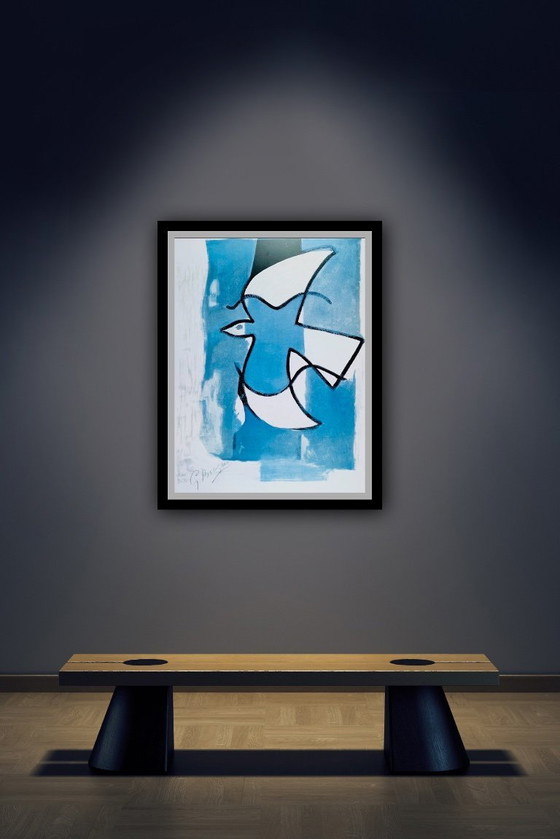 Georges Braque: “L'oiseau Bleu et Gris”. Firmato in lastra.