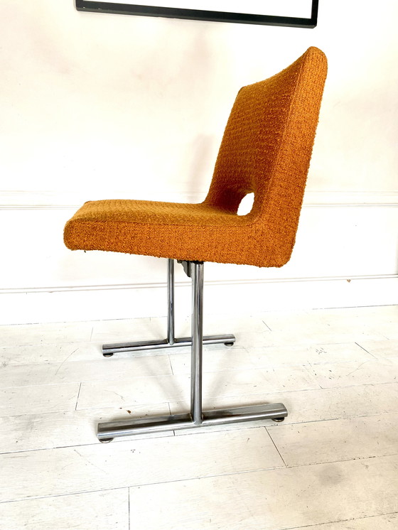 CondizioneMolto buonoColoriArancioneMaterialeLana, MetalloNumero di articoli6Altezza75 cmLarghezza50 cmProfondità40 cmAltezza del sedile43 cm