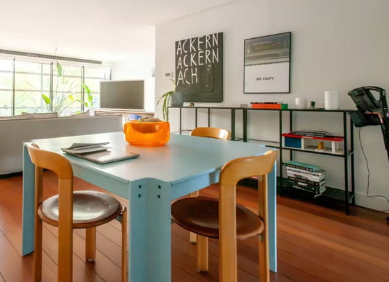 Il tavolo è in condizioni eccellenti ed è stato rifinito professionalmente: completamente levigato, verniciato e ridipinto in un azzurro chiaro di alta qualità, rendendolo come nuovo.