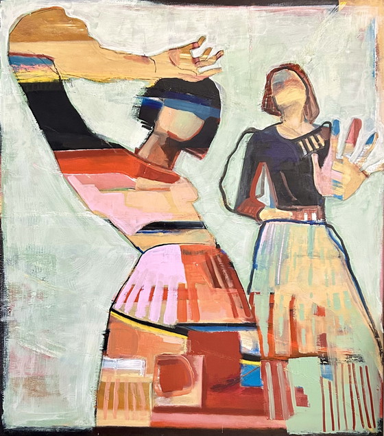 - Il dipinto presenta un'armoniosa miscela di tonalità multicolori, tra cui spiccano i rossi, i blu e gli arancioni, su uno sfondo sottile.