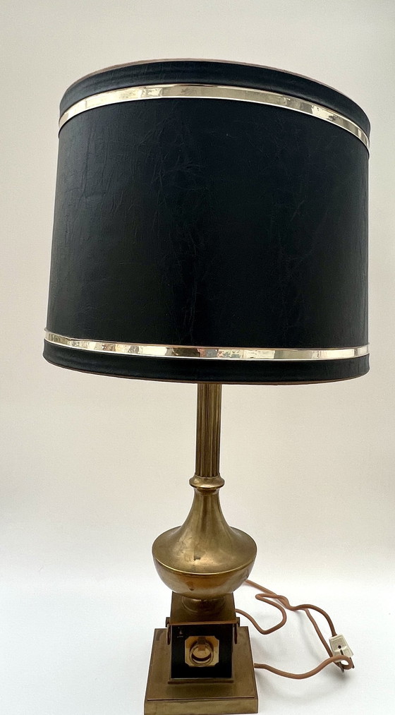 Lampada da tavolo grande in ottone classico con paralume nero - Mid-Century / Classicamente elegante