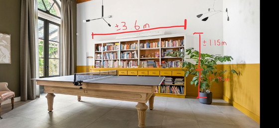 Si tratta di un pezzo solido ed estremamente robusto, realizzato in legno massello e fatto per durare. Le sue dimensioni creano un'immediata presenza architettonica in uno spazio.