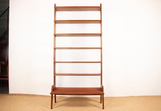 Splendida mensola o libreria in stile scandinavo. Sei ripiani (quattro dei quali regolabili), più un settimo ripiano più grande alla base, offrono ampio spazio per riporre oggetti. Questo pezzo altamente funzionale ed elegante è splendidamente realizzato (con graziose viti in ottone). Un progetto degli anni '50 del designer francese René Jean Caillette presenta una sorprendente somiglianza con questo pezzo.