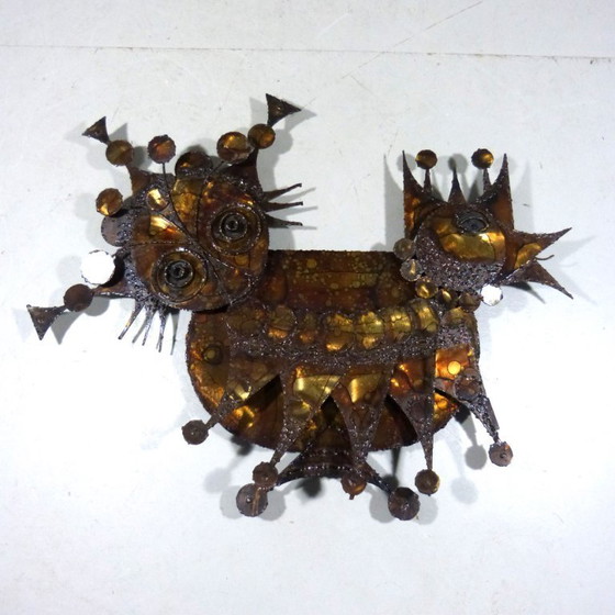 Grande scultura brutalista in ferro da parete di Henrik Horst