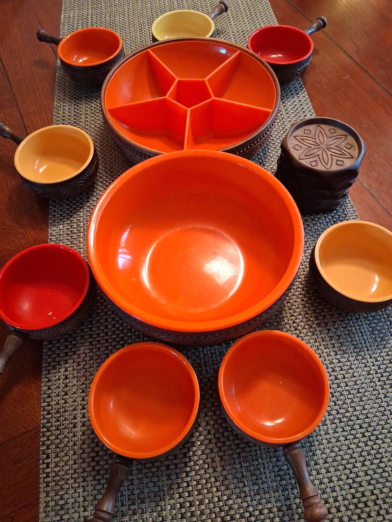 Questo set completo di Emsa offre una splendida collezione di ciotole, scodelle e sottobicchieri che valorizzeranno qualsiasi tavola. Le vibranti tonalità arancioni e gialle, abbinate a caldi accenti marroni, creano un look giocoso ma elegante.