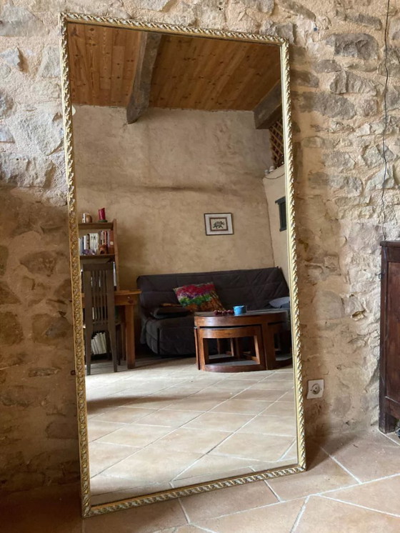 Descrizione: Grande specchio antico con cornice in legno intagliato decorata con motivi floreali dipinti in bianco e oro. Non smussato. Presenta alcuni graffi e scheggiature di vernice lungo i bordi della cornice. Può essere appeso sia in verticale che in orizzontale. Sul retro dello specchio sono presenti due staffe di montaggio. Ottime condizioni, con pochissime, se non nessuna, imperfezione.