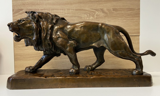 Grande statua antica di leone in bronzo massiccio di Louis Vidal (1831-1892)