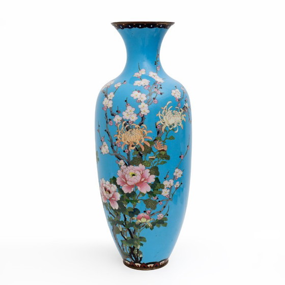 Grande vaso smaltato con decorazione floreale - Rame e ottone - Giappone, fine XIX secolo