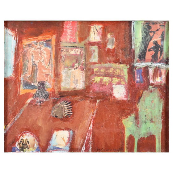 Si tratta di un acrilico su marouflé realizzato da Helen Nieuwendijk (1946). Helen Nieuwendijk è un'artista olandese nata ad Amsterdam. Dopo aver studiato sociologia, ha seguito la sua formazione artistica presso l'Accademia Wackers e lo studio Van Gogh. Il suo lavoro si colloca all'incrocio tra figurazione e astrazione, caratterizzato da colori espressivi, forme fantasiose e un tocco leggero. Lavora con diverse tecniche, tra cui pittura a olio, acrilico, pastello e stampa. Le sue opere sono presenti in diverse collezioni private in patria e all'estero e vengono regolarmente esposte e messe all'asta. ND23011.