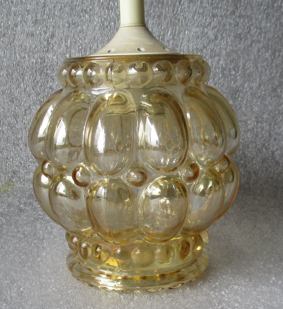 Questa elegante lampada è stata prodotta intorno al 1960-1970, in vetro soffiato decorativo.