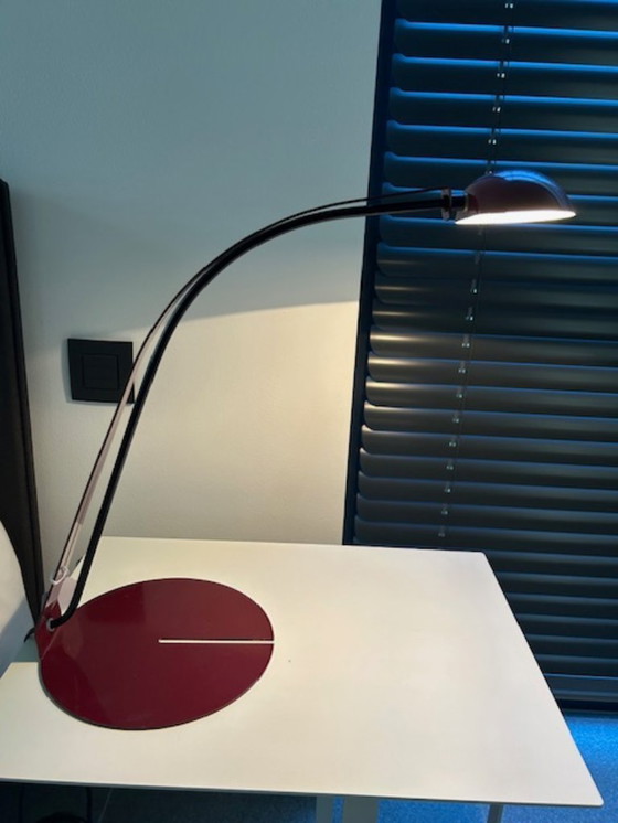 Il modello B1412 è una lampada da tavolo o da scrivania di Herda, un noto produttore olandese di lampade, degli anni '80. La lampada si adatta perfettamente alle attuali tendenze della decorazione domestica anno 2025: un colore bordeaux e un design estremamente minimalista e un interesse per il design del secolo scorso. La lampada è in ottime condizioni e presenta solo alcuni segni d'uso poco evidenti, come ci si può aspettare da una lampada di 50 anni.