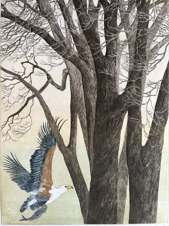 Pregevole acquaforte di Hilda Bernstein (1915 - 2006), firmata a mano, numerata e intitolata Fish Eagle.