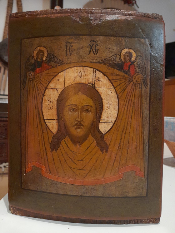 Immergiti nella spiritualità e nella storia con questa antica icona russa, il "Volto di Cristo" o "Mandylion". Questo pezzo straordinario non è solo un'opera d'arte, ma un simbolo di fede che porta con sé secoli di tradizione e devozione. Perfetto per chi desidera aggiungere un tocco di sacralità e bellezza senza tempo alla propria casa.
