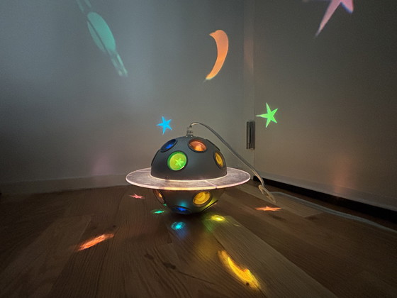 Questa lampada a sospensione IKEA BLIMP è stata introdotta da IKEA nel 1990. Presenta un design unico ispirato agli UFO, perfetto per aggiungere un tocco di arredamento vintage a tema spaziale a qualsiasi stanza. La lampada proietta stelle e lune colorate sulle pareti, creando un'atmosfera stravagante e incantevole. Realizzata in plastica e metallo resistente, è leggera e robusta.