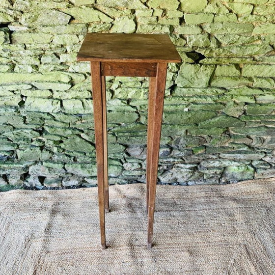 Un piedistallo molto grande in rovere massiccio dalle linee semplici ed eleganti, sostenuto da sottili gambe a fuso che gli conferiscono un aspetto molto leggero.