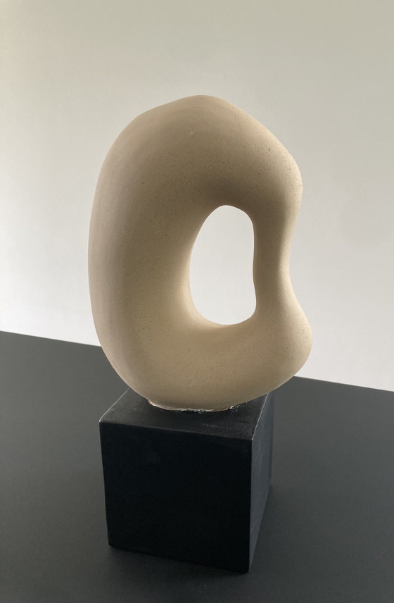 Questa scultura organica è una splendida aggiunta a qualsiasi interno. Realizzata in ceramica, ha una forma fluida e naturale che emana tranquillità ed eleganza. La statua poggia su una base di legno nero, creando un piacevole contrasto tra la morbida tonalità beige della ceramica e il colore scuro del legno. Perfetto per gli amanti dell'arte moderna e minimalista.