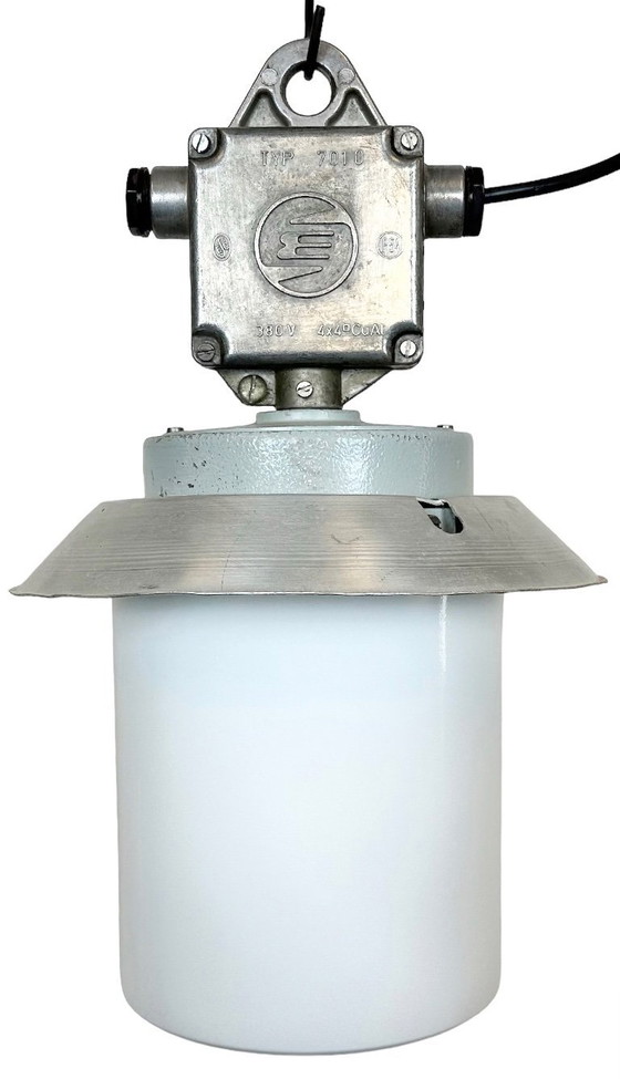 Industrial Aluminium Light with Milk Glass Cover from Elektrosvit, 1970s