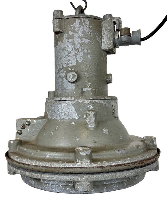 Industrial Grey Cast Aluminium Pendant Light, 1960s