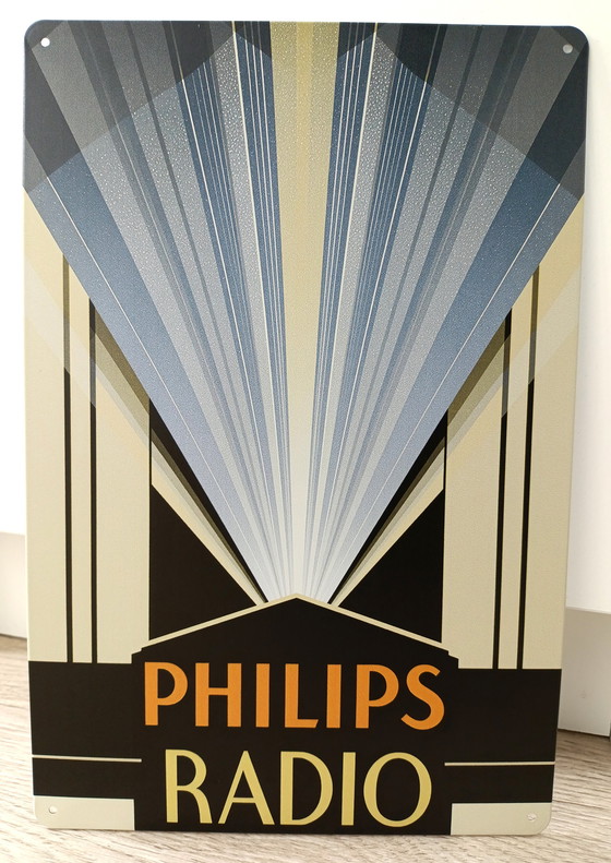 Insegna decorativa in metallo in stile Art Déco per radio Philips