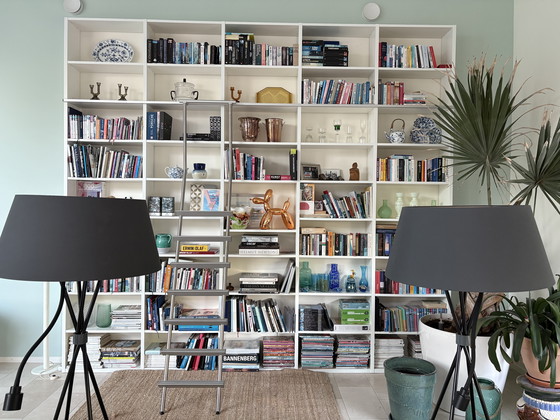 Questa libreria Studimo di alta qualità di Interlübke Kast, rifinita con un'elegante laccatura Schneeweiss M03, offre ampio spazio di archiviazione. Con una larghezza totale di 370 cm, un'altezza di 332,5 cm e una profondità di 25,4 cm, questa libreria offre ampio spazio di archiviazione. La sezione superiore è rimovibile, consentendo una configurazione più bassa. Ha sei lati con 7 griglie alte e sei lati con 2 griglie alte, oltre a cinque ripiani di base e 45 ripiani di costruzione, tutti larghi 70 cm. Il set include una ringhiera a scala lunga 3,7 metri in acciaio inox e alluminio anodizzato. Questo pezzo elegante e moderno è perfetto per organizzare libri e oggetti decorativi e aggiunge un tocco sofisticato a qualsiasi stanza. È richiesto il montaggio a parete per garantire la stabilità.