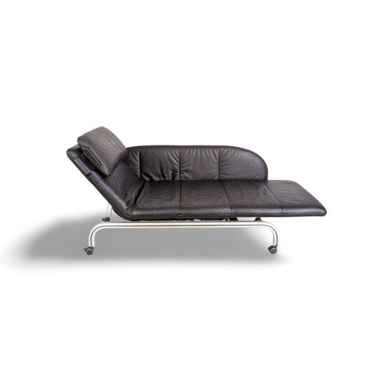 Offriamo in vendita una splendida chaise longue regolabile in pelle nera del produttore tedesco di qualità Interprofil di Bielefeld. Grazie alle sue due ruote, il mobile può essere spostato rapidamente e facilmente e può essere utilizzato anche come divano a due posti.