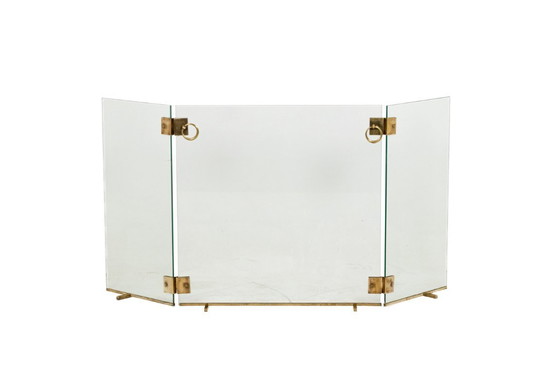 Parafuoco a 3 pannelli in vetro e bronzo.