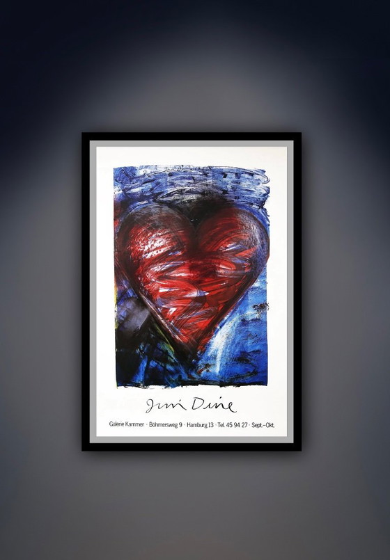 Jim Dine: "Cuore". Manifesto originale del 1974. Firmato sulla lastra. Lievi imperfezioni ai bordi. Manifesto originale della mostra in edizione limitata per la Galerie Kammer di Amburgo. Mai incorniciato e conservato in un archivio buio, tra carta protettiva priva di acidi. Le foto mostrate fanno parte della descrizione; la cornice (dimensioni) mostrata è solo a scopo illustrativo e non è inclusa. Quest'opera d'arte sarà accuratamente imballata e spedita in carta protettiva priva di acidi.