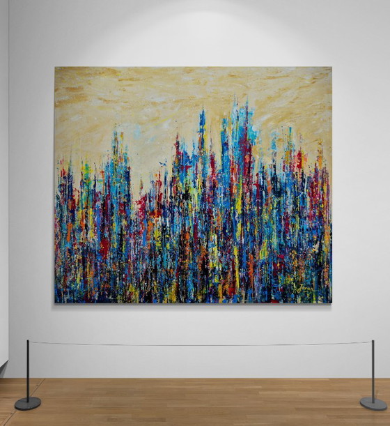 In quest'opera, ho liberato le mie emozioni più profonde, permettendo a colori audaci e pennellate potenti di intersecarsi in una danza dinamica. Il caos crea un senso di armonia. L'opera è dipinta con colori acrilici su tela XXL. La pittura è applicata in modo espressivo e dinamico in più strati. Il dinamismo, l'espressività e la libertà espressiva dell'artista sono chiaramente visibili.