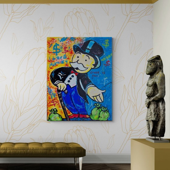 Opera originale in stile Pop/Street Art dell'artista olandese professionista/contemporaneo Jovan Srijemac (1962). L'opera è pronta da appendere e dipinta con colori acrilici, spatola, pennello, pennarello acrilico e spray. Quest'opera si adatta bene a un interno moderno o a uno spazio ufficio. Condizioni: eccellenti (nuova), verniciata, con certificato di autenticità e pronta da appendere. "Il caos di idee che mi è sorto in testa, l'energia interiore e svuotata, vuole emergere come un vulcano e trasformarsi così in un'esplosione e in una sinfonia di colori sulla tela, incorniciata da materia, figure, volti o una composizione astratta". Il lavoro di Jovan è vicino a uno stile espressionista, ma gli piace sperimentare con la Pop Art e l'action painting. La maggior parte delle sue opere è dipinta con una spatola. Il colore viene applicato sulla tela con un sentimento e un'emozione che provengono dal profondo. Il tema è meno importante finché si è soddisfatti della composizione e del colore. Sperimentare nell'arte, con stili, tecniche, colori, ecc., è molto importante per Jovan.