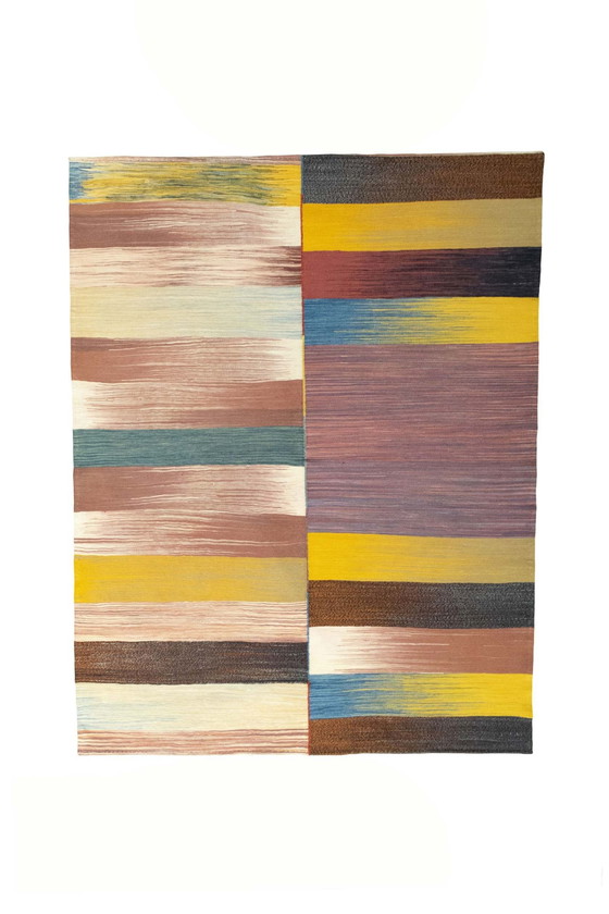 Dimensioni: 198 x 153 cm Materiale: Lana vergine di alta qualità, resistente ed ecologica Design: Composizione di colori vivaci con toni armoniosamente coordinati e un motivo moderno e astratto Metodo di produzione: Tessuto a mano tradizionalmente per la massima qualità e unicità I nostri tappeti vengono lavati professionalmente e spediti in tutto il mondo con UPS, incluso un numero di tracciamento valido. Questo kilim combina l'artigianato tradizionale con un design moderno, perfetto per spazi abitativi attenti allo stile. NR; 50793