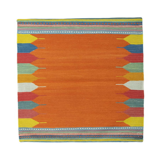 Kilim Fars moderno tessuto a mano – 85 x 87 cm – Design colorato su arancione – 100% lana