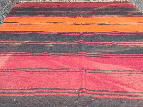 Questo kilim è adatto come tappeto, arazzo o tessuto decorativo. Si adatta bene ad interni bohémien, rustici, minimalisti o eclettici e dona calore e storia a qualsiasi ambiente.