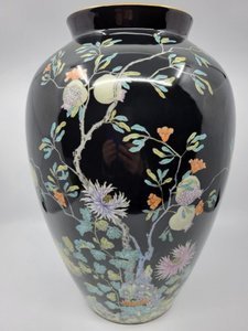 Questo superbo vaso in ceramica bavarese degli anni '60 dimostra un'eccezionale maestria artigianale. Originariamente concepito come vaso, fu trasformato in una lampada da terra, con un piccolo foro sul fondo per consentire il passaggio del cavo elettrico. La base nera del vaso è sontuosamente decorata con motivi floreali cinesi che aggiungono un tocco di eleganza all'oggetto. È in ottime condizioni, sebbene il timbro sul fondo del vaso sia parzialmente cancellato a causa dell'aggiunta del foro. Fondata nel 1884 da Christoph Krautheim, la manifattura si è evoluta nel corso degli anni, diventando un fornitore prestigioso, in particolare della corte reale bavarese, dopo aver ricominciato nel 1912 con il nome di Krautheim & Adelberg. Questo vaso, adattabile come lampada, simboleggia quindi sia la storia che l'artigianato di un'epoca passata.