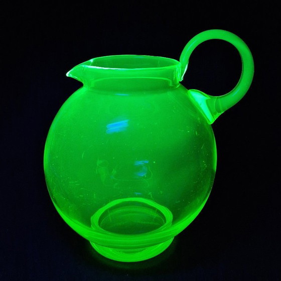 Brocca per acqua in vetro all'uranio soffiato a mano.