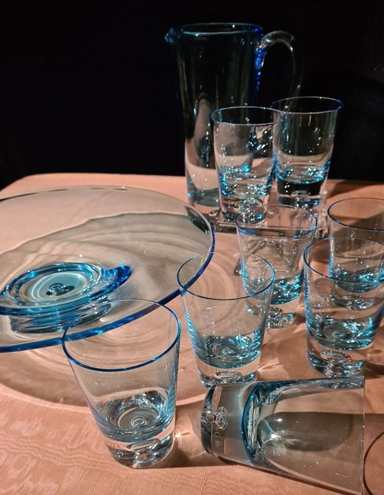 Krosno Poland Set di bevande Bubble in vetro artistico blu ghiaccio con ciotola per ING 2000