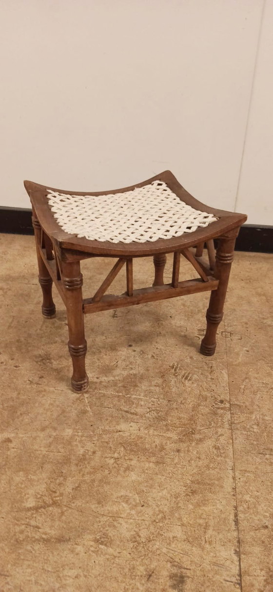 Sgabello vintage in stile neo-egiziano Tebe con seduta in corda intrecciata.