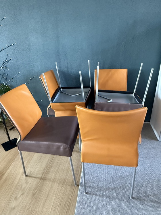 CondizioneBuonoColoriMarrone, ArancioneMaterialePelleNumero di articoli6Altezza19 cmLarghezza18 cmProfondità33 cmAltezza del sedile19 cmSegni di utilizzoCrepa