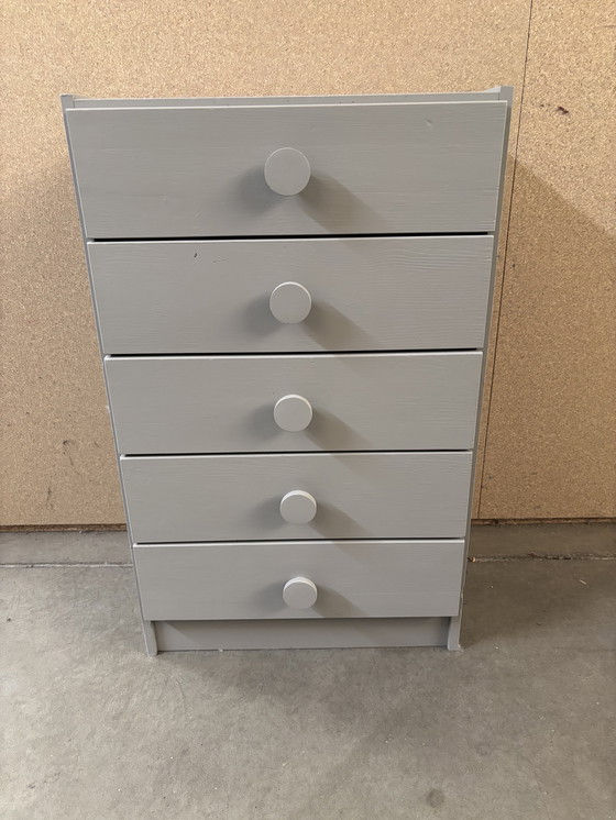 Questa cassettiera vintage presenta un'elegante finitura grigia e un design minimalista. Offre un ampio spazio di archiviazione con cinque cassetti spaziosi, ciascuno dotato di una maniglia rotonda per un facile accesso. Il pezzo è realizzato in legno, per garantire una lunga durata e un aspetto classico che si adatta bene a qualsiasi stanza. Il suo stile vintage aggiunge un tocco di nostalgia e fascino al vostro arredamento.